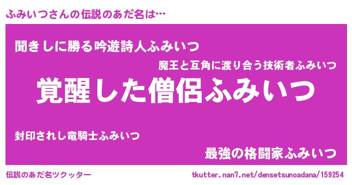| ヘコむあだ名 | 『ふみっ子』『ふみいつ(小並感)』 |