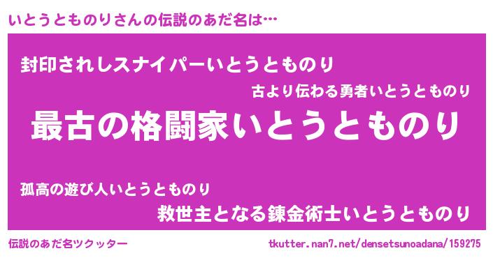 | ファンタジー風あだ名 | 『エターナルイトウトモノリー』 |