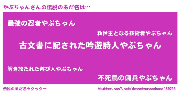| ヒーロー風カッコイイあだ名 | 『ネオヤブチャン』『仮面ヤブダー』 |