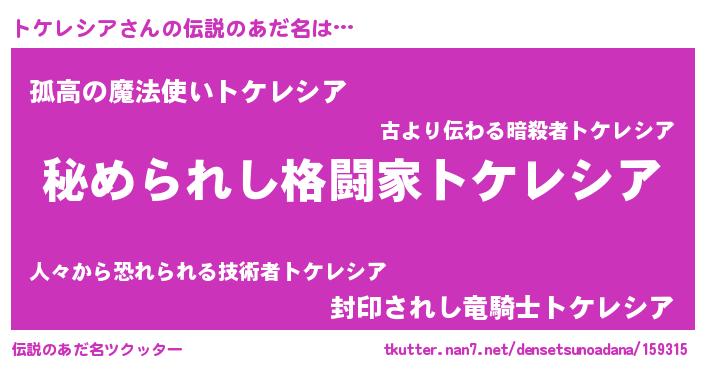 | ヒーロー風カッコイイあだ名 | 『ウルトラトケレシアマン』 |