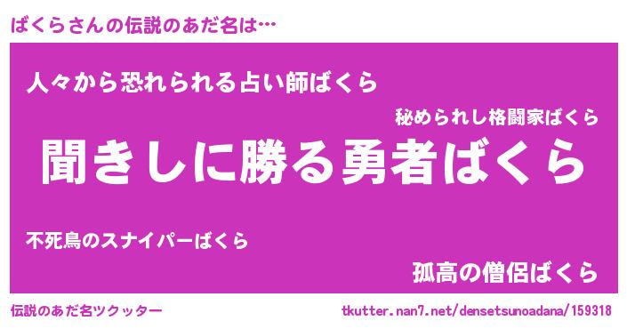 | 男性向けラノベタイトル風あだ名 | 『緋弾のバクラ』『魔弾の王とばくら』 |