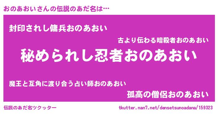 | ファンタジー風あだ名 | 『エターナルオノアオイー』『オノフェル』 |