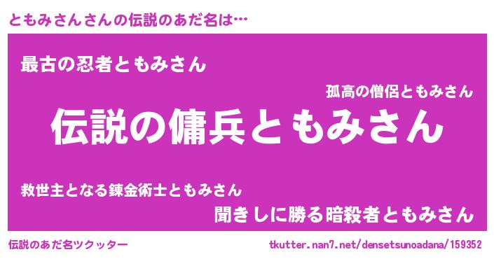 | ヒーロー風カッコイイあだ名 | 『仮面トモダー』『スーパートモミサン』 |