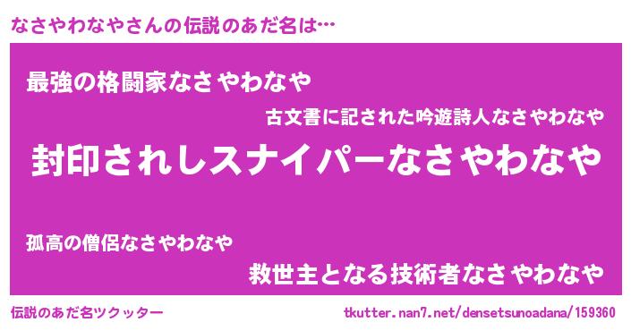 | ファンタジー風あだ名 | 『ゼナサトゥ』『ナサフェル』 |