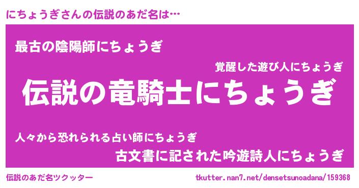 | 意味不明あだ名 | 『住所不定無職にちょうぎ(2歳)』 |