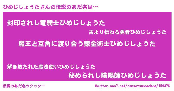 | 意味不明あだ名 | 『自称ひめじしょうた』 |