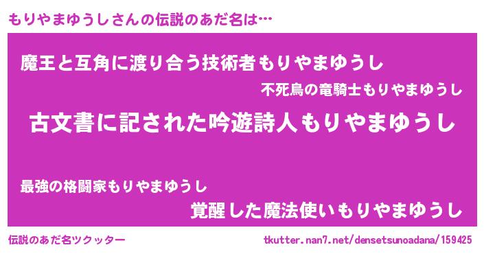 | ヒーロー風カッコイイあだ名 | 『ネオモリヤマユウシ』『暗黒騎士モリ』 |