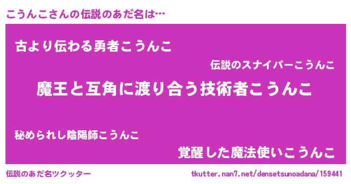 | ヒーロー風カッコイイあだ名 | 『友情の使者こうんこ』『ネオコウンコ』 |