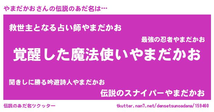 | ヒーロー風カッコイイあだ名 | 『幻影騎士ヤマ』『最強戦士ヤマダカオ』 |