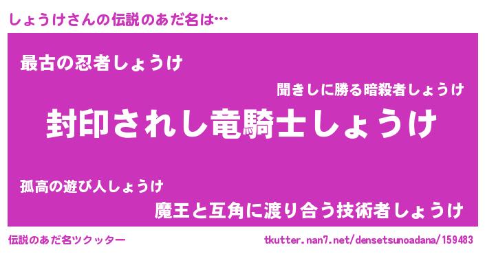 | ヒーロー風カッコイイあだ名 | 『スーパーショウケ』『仮面ショダー』 |