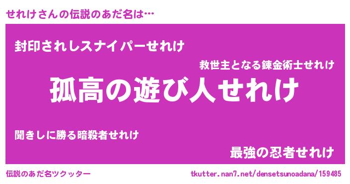 | 女子向けラノベタイトル風あだ名 | 『せれけなんてお断りですっ。』 |
