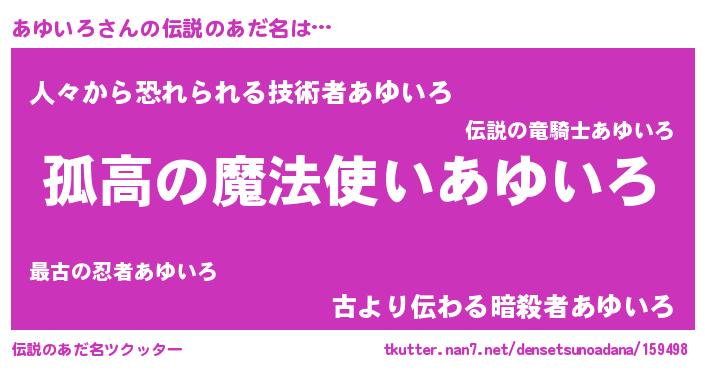 | ヘコむあだ名 | 『あゆを』『あゆいろ(小並感)』 |
