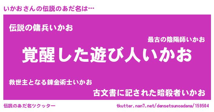 | 男性向けラノベタイトル風あだ名 | 『いかおの嫁は女の子じゃないと思った?』 |