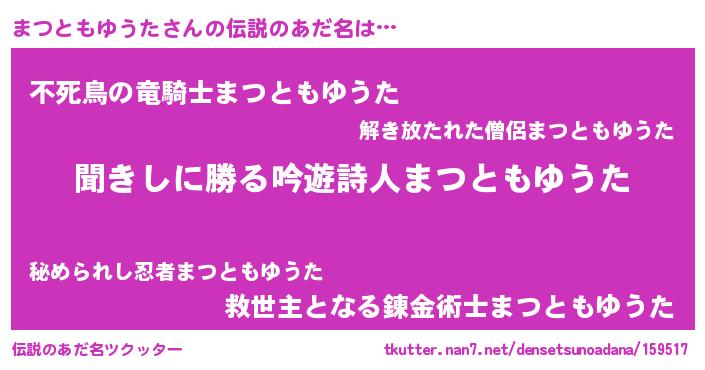 | ヘコむあだ名 | 『まつともゆうた(小並感)』『まつにゅー』 |