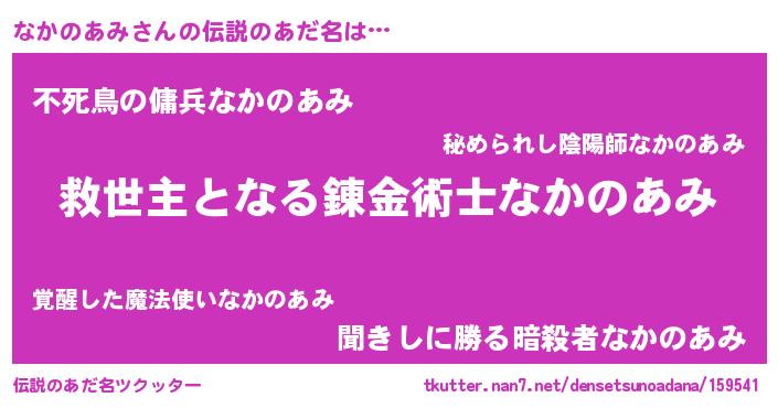 | ヒーロー風カッコイイあだ名 | 『慈愛の使者なかのあみ』『仮面ナカダー』 |