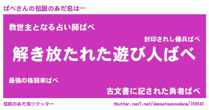 | ヒーロー風カッコイイあだ名 | 『幻影騎士バベ』『正義の使者ばべ』 |