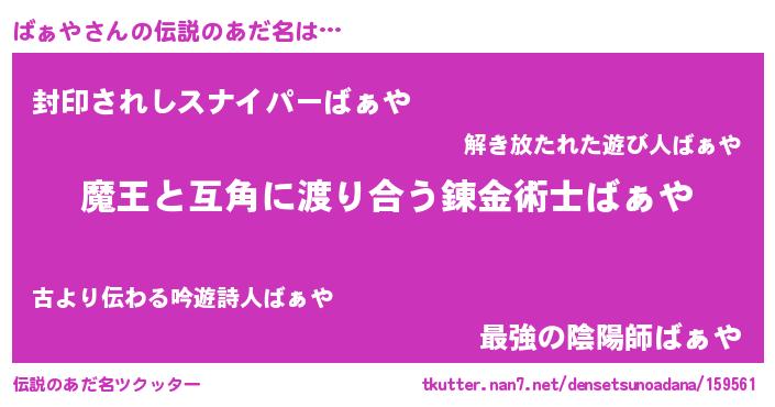 | 意味不明あだ名 | 『自称ばぁや』『眠気覚ましガムばぁや味』 |
