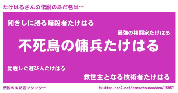 | ポケモン風あだ名 | 『タケセウス』『タケチュウ』 |