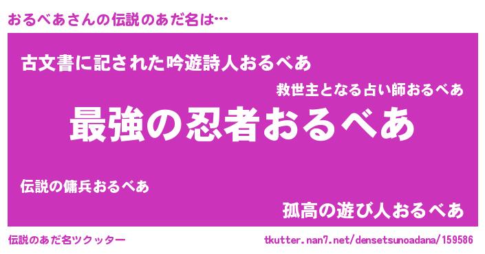 | 意味不明あだ名 | 『おるべあフォーエバー』『自称おるべあ』 |
