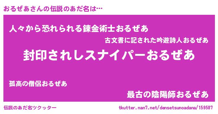 | 意味不明あだ名 | 『つくし科おるぜあ属』『自称おるぜあ』 |
