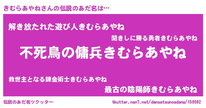 | 男性向けラノベタイトル風あだ名 | 『きむらあやねに滅ぼされるだけの簡単なお仕事です』 |