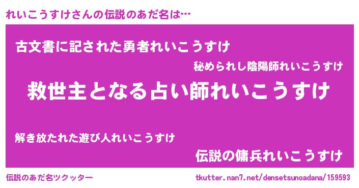 | 男性向けラノベタイトル風あだ名 | 『ノーゲーム・ノーレイコウスケ』 |
