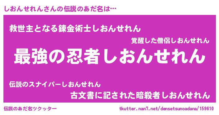 | 意味不明あだ名 | 『しおんせれんフォーエバー』 |