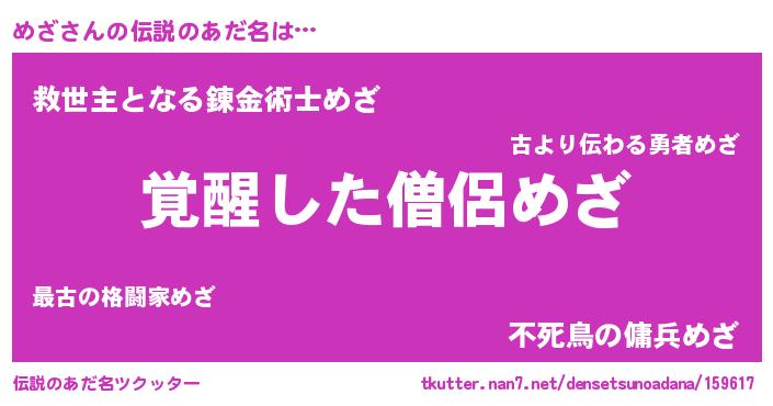 | ヒーロー風カッコイイあだ名 | 『天弓騎士メザ』『仮面メザダー』 |