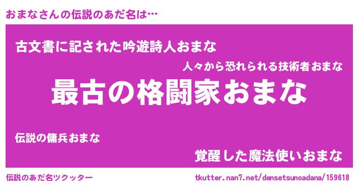 | ヒーロー風カッコイイあだ名 | 『ウルトラおまなマン』『究極戦士オマナ』 |