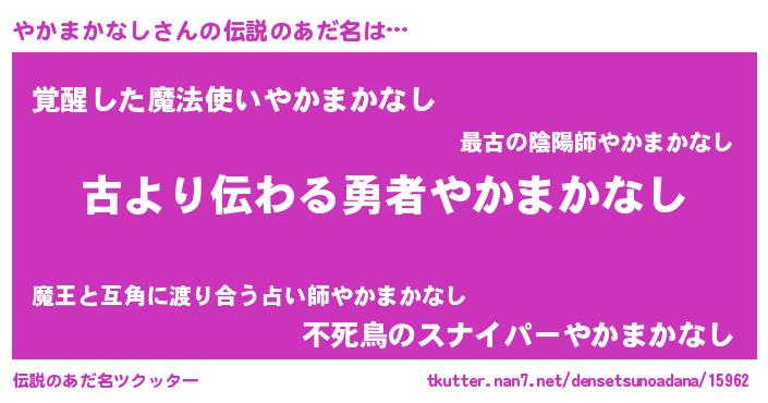 | ヒーロー風カッコイイあだ名 | 『ネオヤカマカナシ』『天弓騎士ヤカ』 |