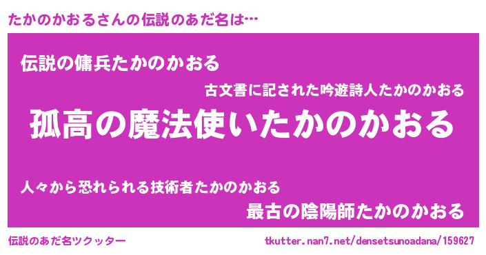 | ポケモン風あだ名 | 『タカゴンZ』『ヒタカノカオル』 |