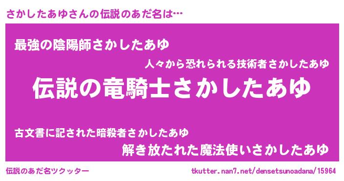 | 女子向けラノベタイトル風あだ名 | 『(仮)さかしたあゆのやんごとなき事情』 |