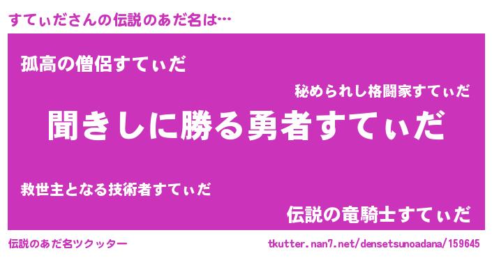 | 男性向けラノベタイトル風あだ名 | 『すてぃだという概念が存在しない退屈な世界 』 |