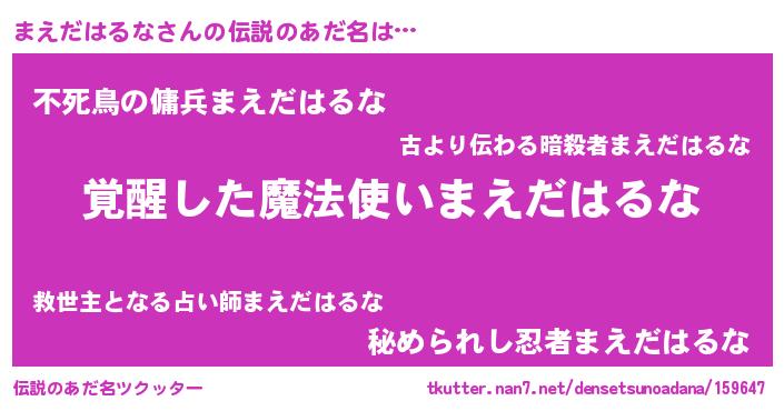 | ヒーロー風カッコイイあだ名 | 『炎刃騎士マエ』『スーパーマエダハルナ』 |