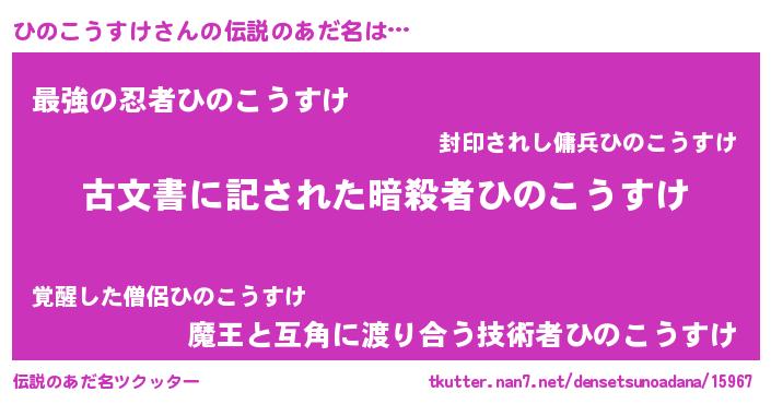| 意味不明あだ名 | 『永久保存ひのこうすけ』 |