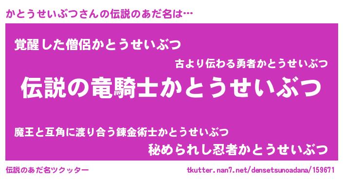 | ヒーロー風カッコイイあだ名 | 『スーパーカトウセイブツ』 |
