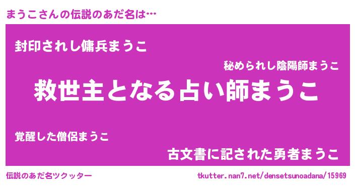 | 男性向けラノベタイトル風あだ名 | 『まうこに滅ぼされるだけの簡単なお仕事です』 |