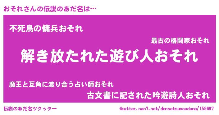 | 意味不明あだ名 | 『とにかく怪しいおそれ』『自称おそれ』 |