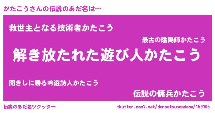 | 意味不明あだ名 | 『住所不定無職かたこう(77歳)』 |