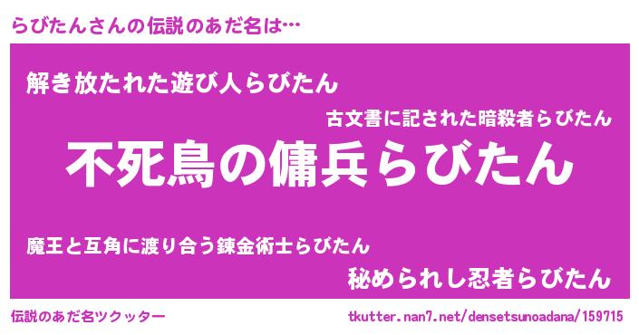 | 意味不明あだ名 | 『自称らびたん』『ペロリンらびたん』 |