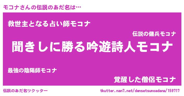 | 意味不明あだ名 | 『永久保存モコナ』『自称モコナ』 |