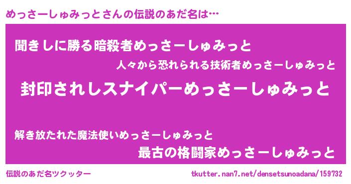 | ファンタジー風あだ名 | 『ゼメットゥ』『メッフェル』 |