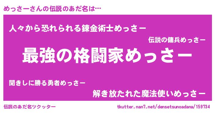 | 男性向けラノベタイトル風あだ名 | 『めっさーに滅ぼされるだけの簡単なお仕事です』 |