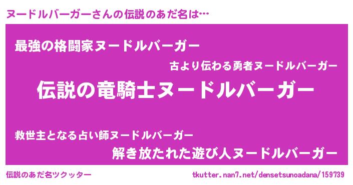 | 意味不明あだ名 | 『自称ヌードルバーガー』 |