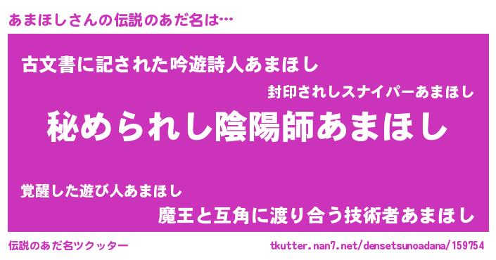 | ヒーロー風カッコイイあだ名 | 『ウルトラあまほしマン』『ネオアマホシ』 |