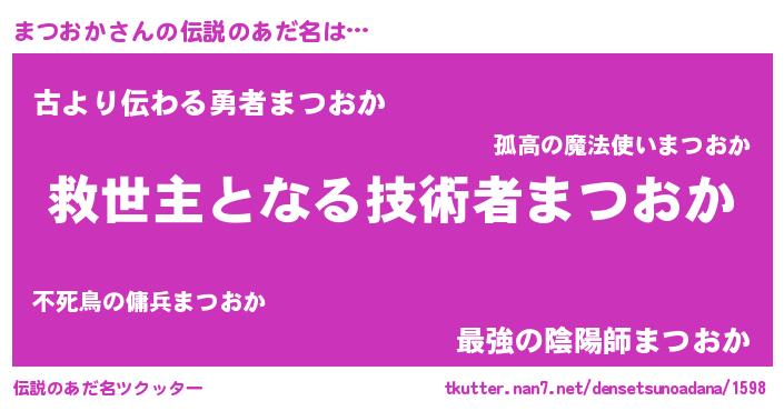 | 意味不明あだ名 | 『自称まつおか』『永久保存まつおか』 |