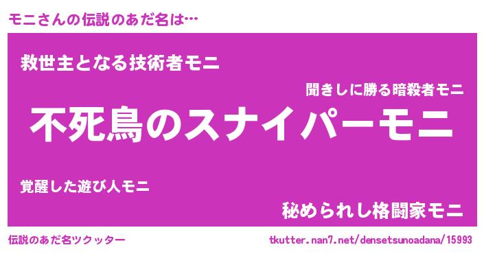 | ヒーロー風カッコイイあだ名 | 『サイバー戦士モニ』『スーパーモニ』 |