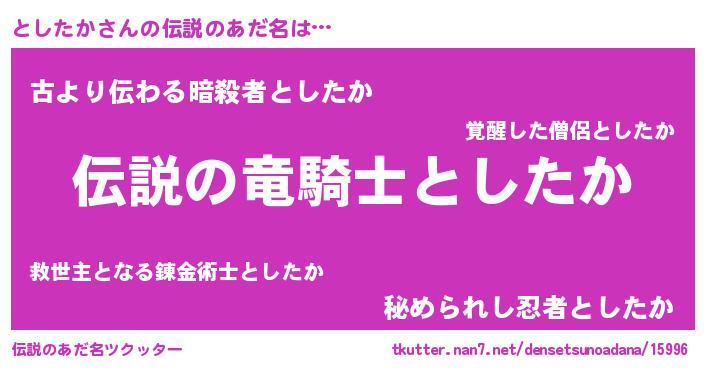 | ファンタジー風あだ名 | 『ユリトシヴァット』『トシフェル』 |