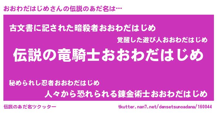 | 胡散臭い通販商品みたいなあだ名 | 『必ず成功するブレスレット…その名も「おおわだはじめ」』 |