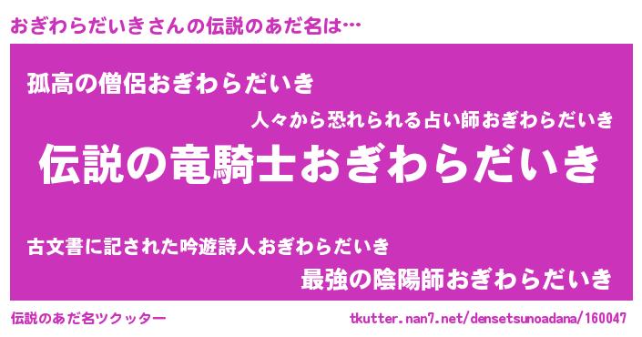 | ヒーロー風カッコイイあだ名 | 『スーパーオギワラダイキ』 |